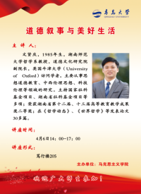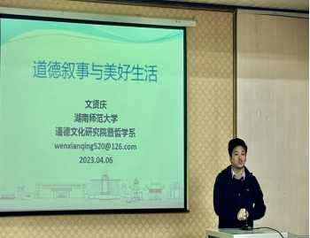 4月6日下午,爱游戏ayx官方网站特邀湖南师范大学文贤庆教授为师生作了题为“道德叙事与美好生活”的学术报告,报告由姜文明副院长主持。