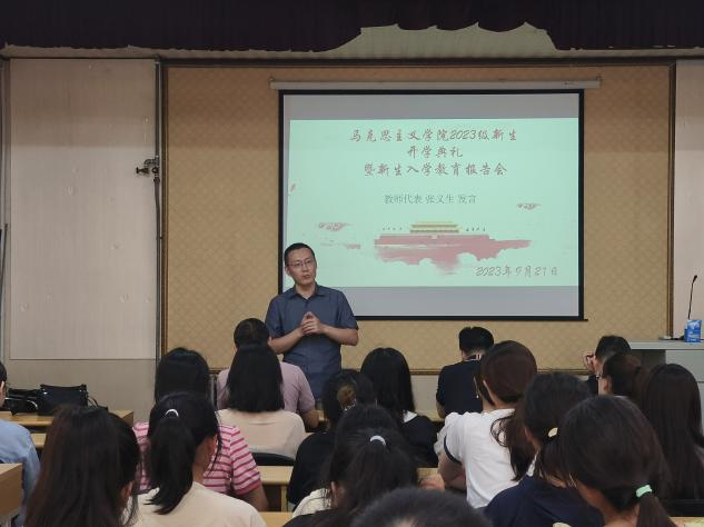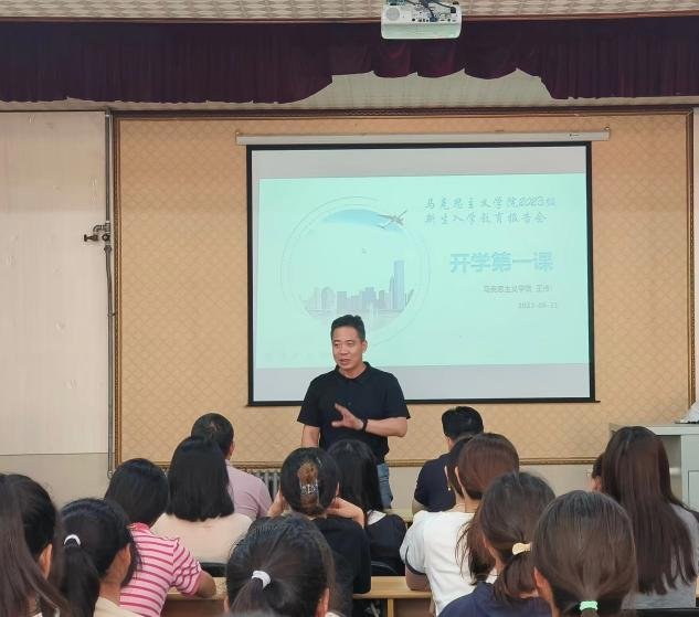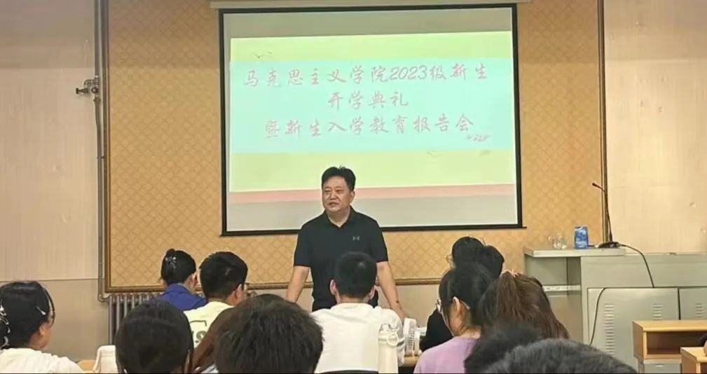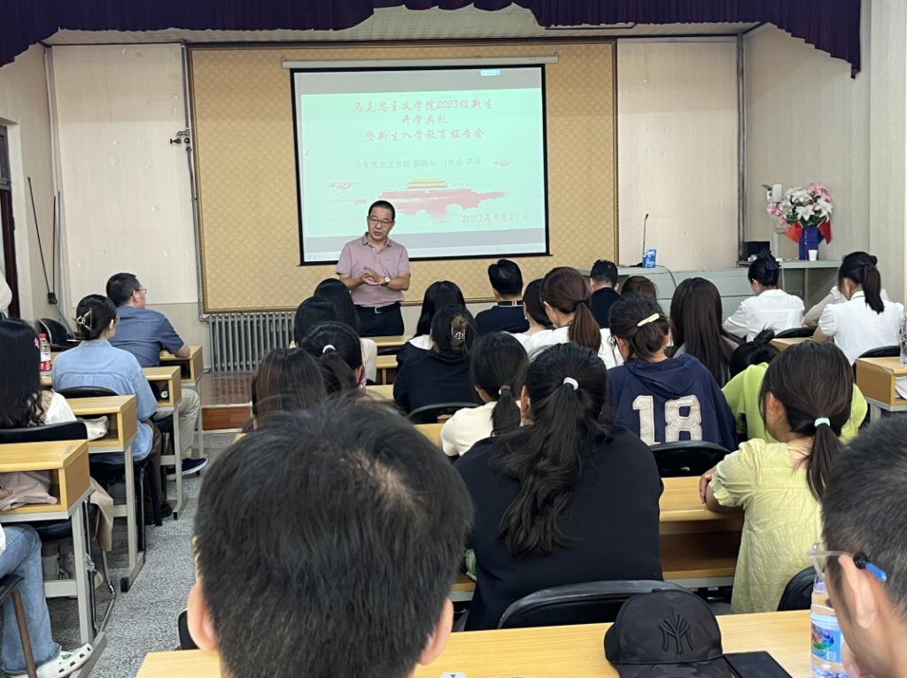 9月21日下午两点,爱游戏ayx官方网站2023级新生开学典礼暨入学第一课在笃行楼205举行。爱游戏ayx官方网站党委书记王传永、党委副书记姜淮、副院长刁世存、副院长郭金鸿、思想政治教育系主任张义生、班主任孙振、辅导员马景瑞以及2023级全体本科生、研究生出席典礼。本次会议由2021级学生蓝文慧主持。
