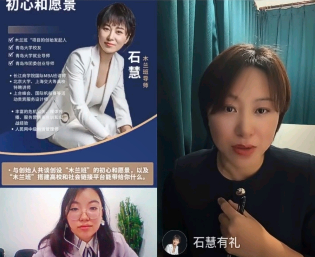 本次访谈中木兰班诚邀创始人石慧老师,与同学们一起谈谈创设“木兰班”的初心,以及“木兰班”搭建高校和社会链接平台能带给你什么。