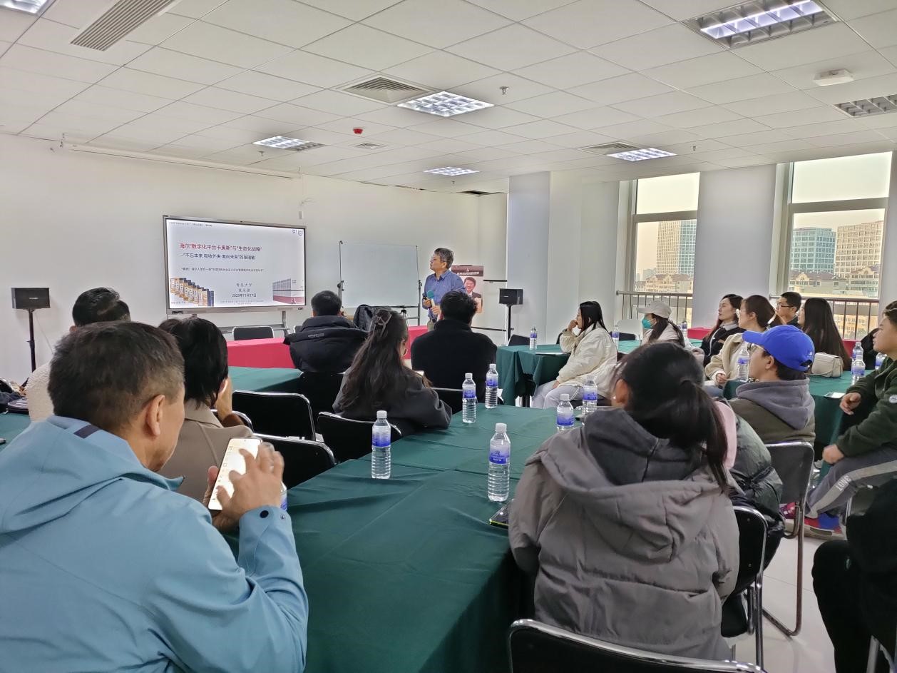 之后,爱游戏ayx官方网站组织员、海尔“人单合一管理模式”研习班导师管永建老师开课讲解“人单合一”,管老师用生动的例子和形象的表达,具体传神地讲授了海尔“人单合一”管理模式。在物联网时代,海尔生态品牌和海尔人单合一模式正在实现全球引领。海尔作为实体经济的代表,布局智慧住居和产业互联网两大主赛道,以科技创新为全球用户定制智慧生活,助推企业实现数字化转型,助力经济社会高质量发展、可持续发展。海尔“人单合一管理模式”研习班的设立就是为了更好的将企业战略与企业智慧融入到学习实践中,促进学生学习与创新,在提高思想水平的基础上促进素质综合发展。