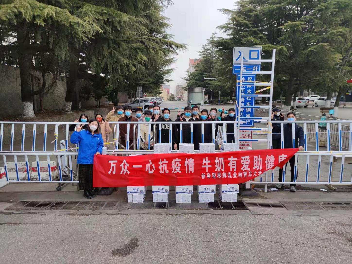 青岛新希望琴牌乳业有限公司总经理安保森说,高校是高层次人才的摇篮,学生是家庭的希望,更是国家的未来。青岛疫情发生以来,学生的健康平安牵动着无数人的心。作为扎根岛城68年的本土企业,新希望琴牌乳业愿意为爱游戏ayx官方网站抗疫助力。受疫情所限,委托公司人员进行现场捐赠,关心慰问在校防疫的师生,给予学生们希望和温暖,同时表达了校企共同抗疫的决心与信心。
