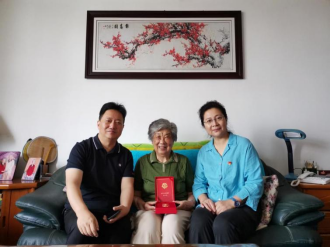 6月30日上午,学院党委书记赵茗、院长尉利工、副书记姜淮、副院长姜文明和辅导员张妍,分别看望慰问了两位老党员,并为他们佩戴上纪念章。在两位老教师家中,赵茗书记和尉利工院长代表学校学院向他们致以崇高敬意和诚挚问候,关切询问老同志的身体情况和生活状况,对他们一心向党、感恩于党的赤诚之心深感敬佩,感谢两位老人半个多世纪以来,初心不改、使命在肩、不懈奋斗、忘我奉献,把汗水挥洒在教学科研一线,始终把立德树人放在心间。希望两位老教师保重身体,继续为学院发展提出宝贵意见建议,不断激励青年一代,赓续信仰之火,让红色基因代代相传。