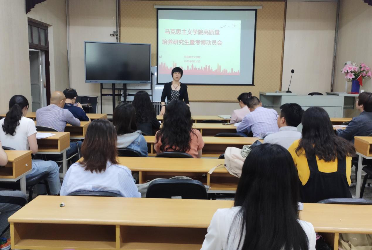 6月10日上午,爱游戏ayx官方网站高质量培养研究生暨考博动员会在笃行楼205大会议室顺利召开。会议由研究生教学秘书王翠云主持,副院长郭金鸿、姜文明和学科负责人曲新英、赵永刚、全体硕士生导师及辅导员张妍出席了会议,2019级、2020级全体研究生参会。