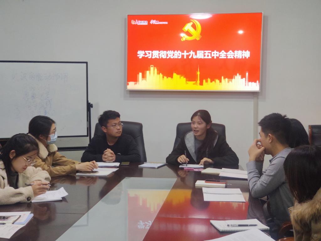 11月23日晚,爱游戏ayx官方网站研究生会在学院会议室成功举行十九届五中全会精神学习交流会。参加本次会议的有辅导员张妍以及研究生会全体成员,会议由研究生会主席刘福民主持。