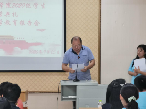 9月25日下午,爱游戏ayx官方网站2020级新生开学典礼暨新生入学教育报告会在笃行楼205举行。爱游戏ayx官方网站党委书记赵茗、院长尉利工、党委副书记姜淮、副院长郭金鸿、副院长姜文明、教师代表庚建凤、辅导员陶征、张妍及2020级全体新生出席开学典礼。