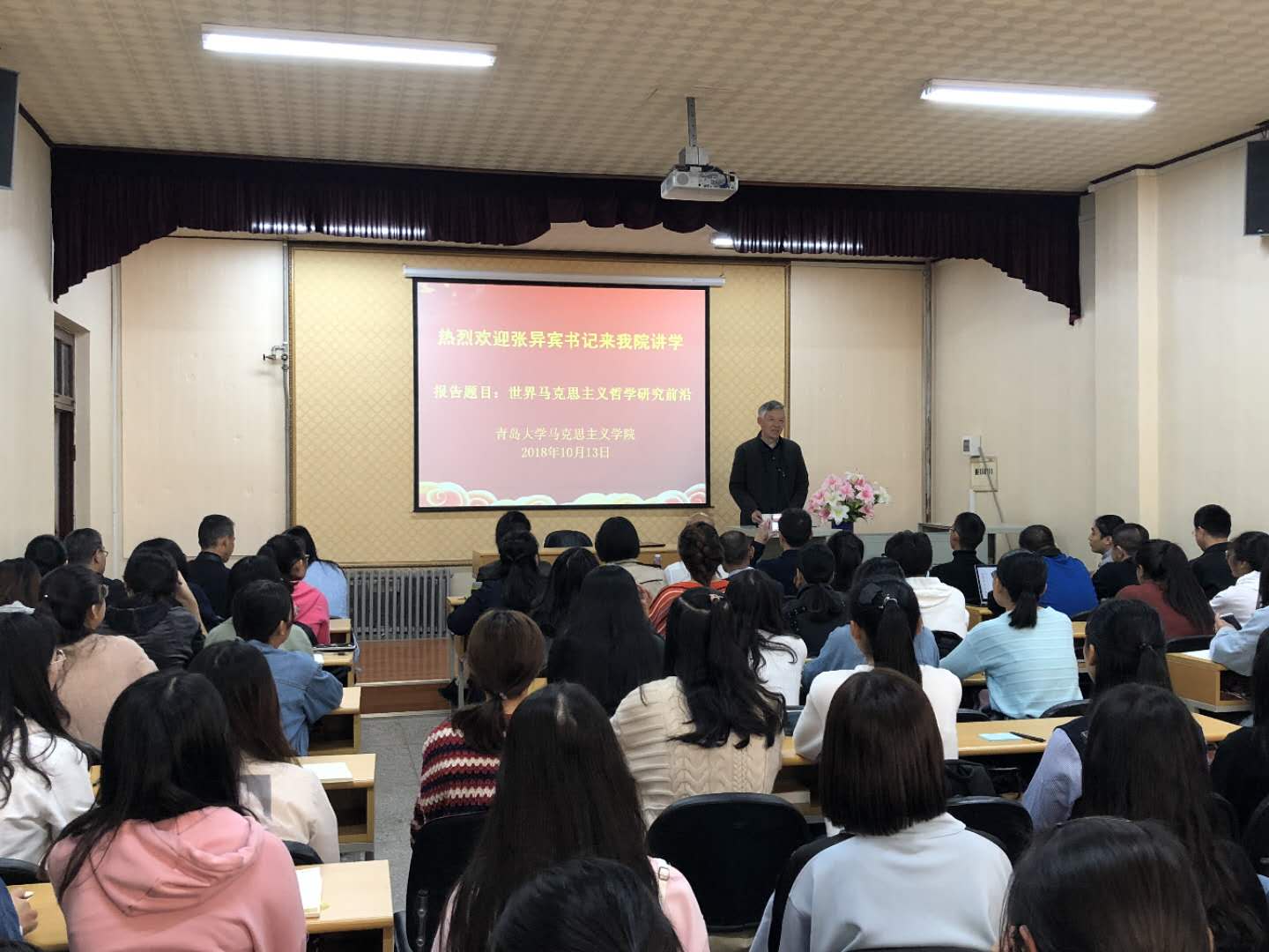 2018年10月13日下午两点,爱游戏ayx官方网站笃行楼205会议室座无虚席,全院师生们用期盼的眼光和热烈的掌声迎来了南京大学党委书记、博士生导师张异宾教授。作为国内外著名马克思主义研究专家,张教授为爱游戏ayx官网师生带来一场“世界马克思主义哲学研究前沿”的精彩报告。郭金鸿副院长主持了报告会。参加报告的还有爱游戏ayx官方网站党委书记赵茗、院长丛松日,以及校内外慕名而来的师生。