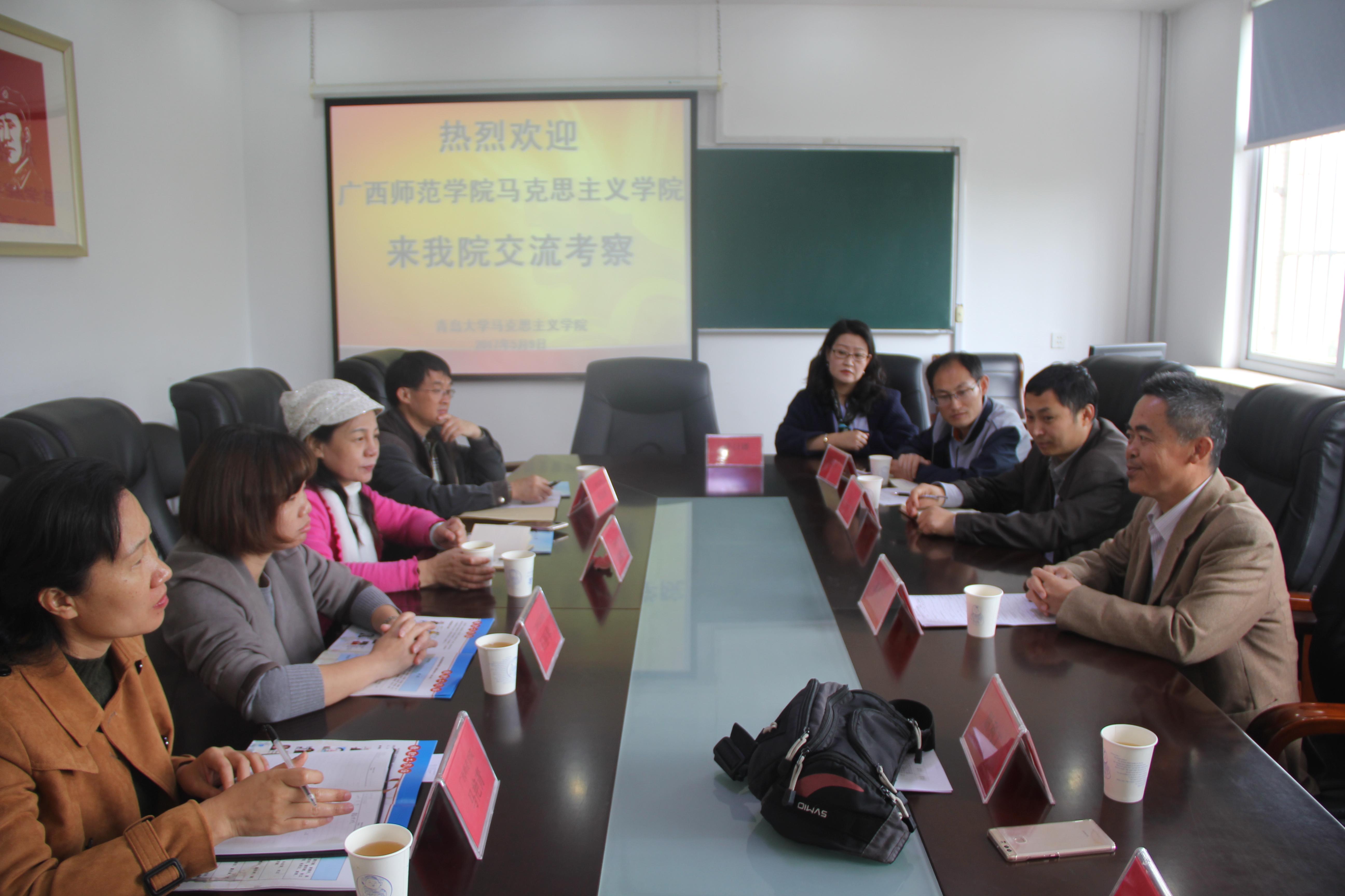 2017年5月9日上午,广西师范学院爱游戏ayx官方网站一行五人由副院长石丽琴副教授带队来爱游戏ayx官网调研。爱游戏ayx官网常务副院长丛松日教授、副院长尉利工教授以及教科办、相关教研部教师参加了座谈。