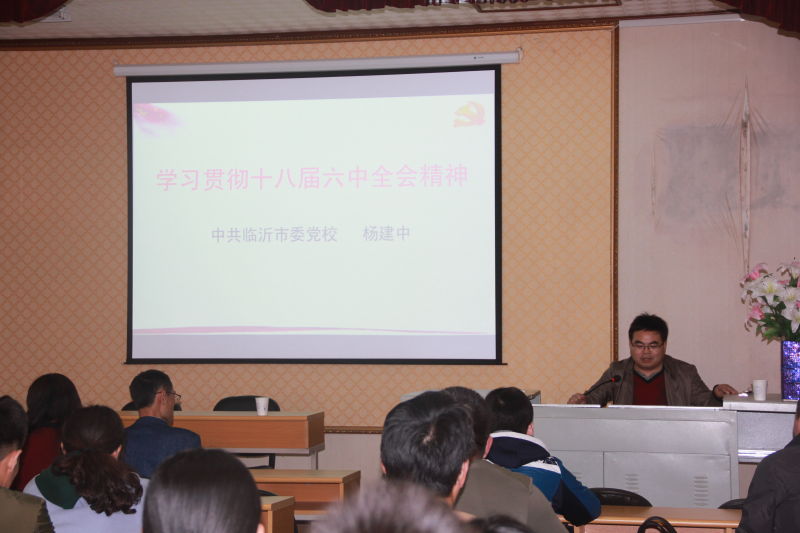 2017年4月7日下午,“山东省高校思想政治理论课特聘教授”、临沂市委党校副校长、杨建中教授在爱游戏ayx官方网站第一会议室,为学院教师、全体研究生和2016级本科生做了题为“学习贯彻十八届六中全会精神”的报告。报告深入浅出、引经据典、联系实际,收到师生的热烈欢迎。