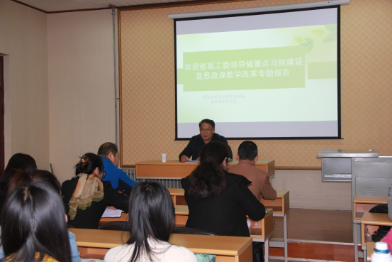 4月19日下午,省委高校工委宣教处刘欣堂处长应邀来到爱游戏ayx官方网站,给学院师生就思政课教学改革,提高教学质量作专题报告。