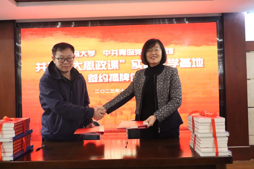 青岛党史纪念馆馆长宋红在致辞中表示,“要重视大学生的红色教育,让红色教育既有意义又有意思。党史纪念馆愿以此次签约为契机,加强与爱游戏ayx官方网站的馆校合作。”爱游戏ayx官方网站党委书记王传永也在致辞中强调,“把‘大思政课’上好、把青岛的历史讲好,是我们爱游戏ayx官方网站义不容辞的责任。也是我们爱游戏ayx官方网站老师的使命所在”。随后,青岛党史纪念馆馆长宋红与爱游戏ayx官方网站副院长姜文明签署《共建“大思政课”实践教学基地合作协议》,并与爱游戏ayx官方网站党委书记王传永共同为“大思政课”实践教学基地揭牌。