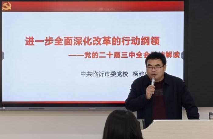 为学习贯彻落实党的二十届三中全会精神,加强学院师生的专业理论素养与实践能力培养。12月5日下午,爱游戏ayx官网邀请中共临沂市委党校一级调研员、临沂市政协常委杨建中教授在笃行楼205作专题讲座。本次讲座由学院副院长李微老师主持。学院部分硕士研究生参加了讲座。