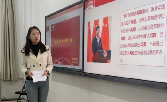 4月21日,爱游戏ayx官网“笃行”宣讲团成员、2022级思想政治教育专业硕士研究生李佳怡和黄绪涛在东十二教105和207教室为纺织服装学院学生开展党的二十大精神宣讲活动。李佳怡以《坚定文化自信,践行文化担当》为题,结合视频与案例,从文化自信的理论内涵、文化自信的底气来源、为何要坚定文化自信以及如何坚定文化自信四个方面展开宣讲。接下来,黄绪涛通过带领大家回顾“六个必须坚持”的深刻内涵,并以其中的《必须坚持问题导向》为题,结合新时代的发展实践、中国共产党的生动历史以及习近平新时代中国特色社会主义思想的发展脉络,阐述“必须坚持问题导向”这一思想的深刻内涵、发展历程、现实支撑以及对于新时代青年的现实启示。